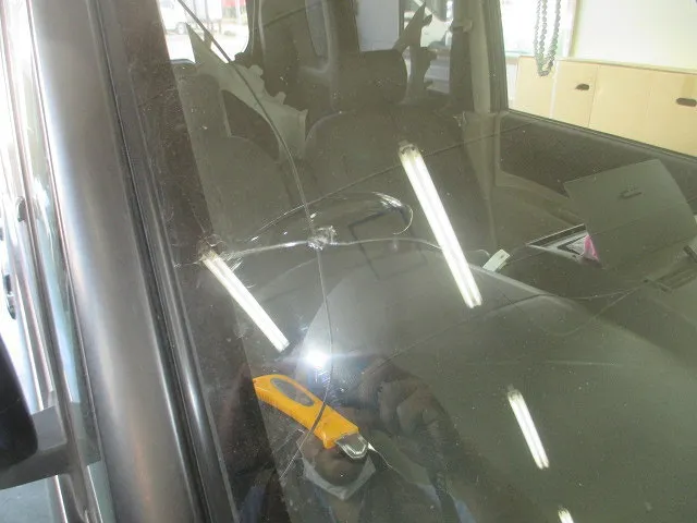 新発田市にお住まいのY様よりスペーシアのご入庫です。今回、飛び石によるフロントガラスの破損です。
